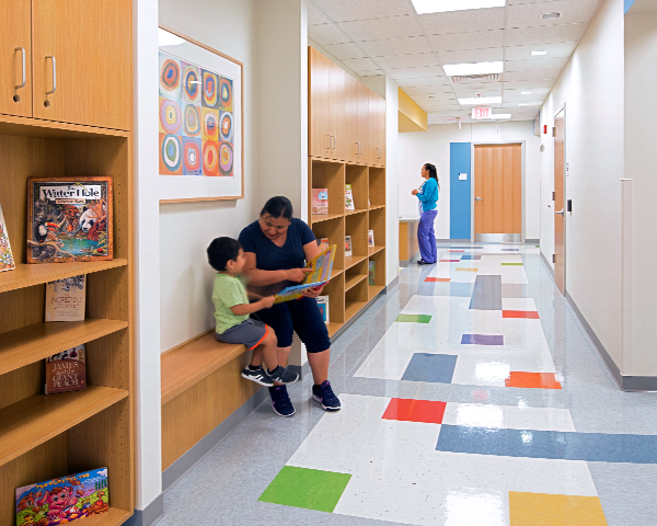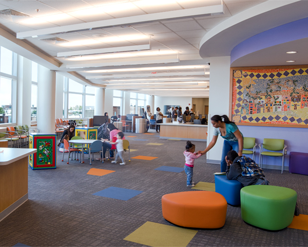 The Children’s Hospital of Philadelphia (CHOP) joined with the City of Philadelphia in a public-private partnership to create the new South Philadelphia Community Health and Literacy Center. This innovative facility combines a City Health Center, a CHOP primary care practice, a branch of the Free Library, and a City recreation center with playground. The Center serves an ethnically diverse population from the surrounding communities, many of whom are recent immigrants. The mix of uses enables joint wellness programs combining health education, clinical treatment, and physical activity. The project is LEED Silver certified.